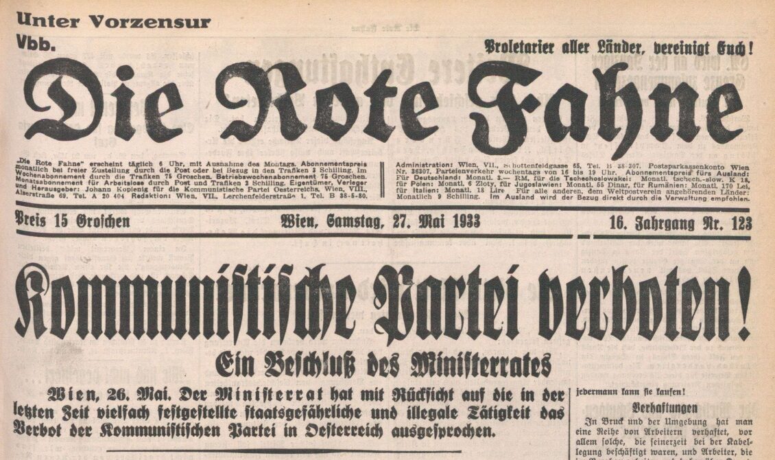 Le Parti communiste d’Autriche (KPÖ) demeure marginal dans l’Autriche de l’entre-deux-guerres, largement dominée par la social-démocratie du SDAP/SPÖ, en particulier dans les milieux ouvriers viennois. Interdit dès 1933, il poursuit son activité dans la clandestinité et participe aux formes de résistance développées après l’échec de l’insurrection de février 1934. L’une de ses spécificités réside dans l’importance accordée à la question nationale : certains de ses représentants élaborent l’idée d’une identité autrichienne distincte de l’Allemagne, fondant ainsi une opposition précoce à l’Anschluss.