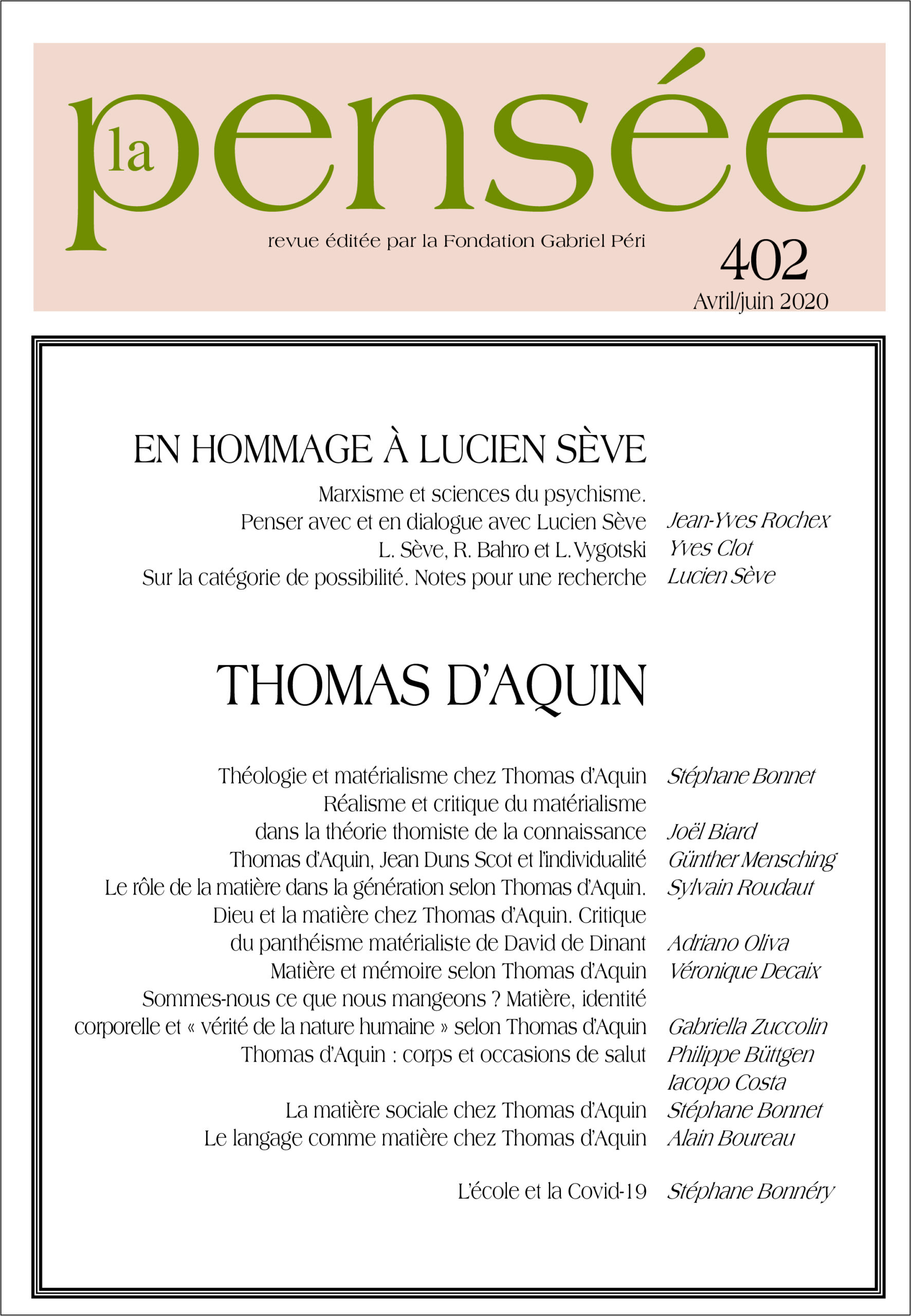 ISBN 9 782375 260456, n°402 avril-juin 2020
